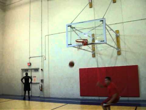 Powerlifter goes between the legs to dunk! Guess all those deadlifts aren’t hurting him.